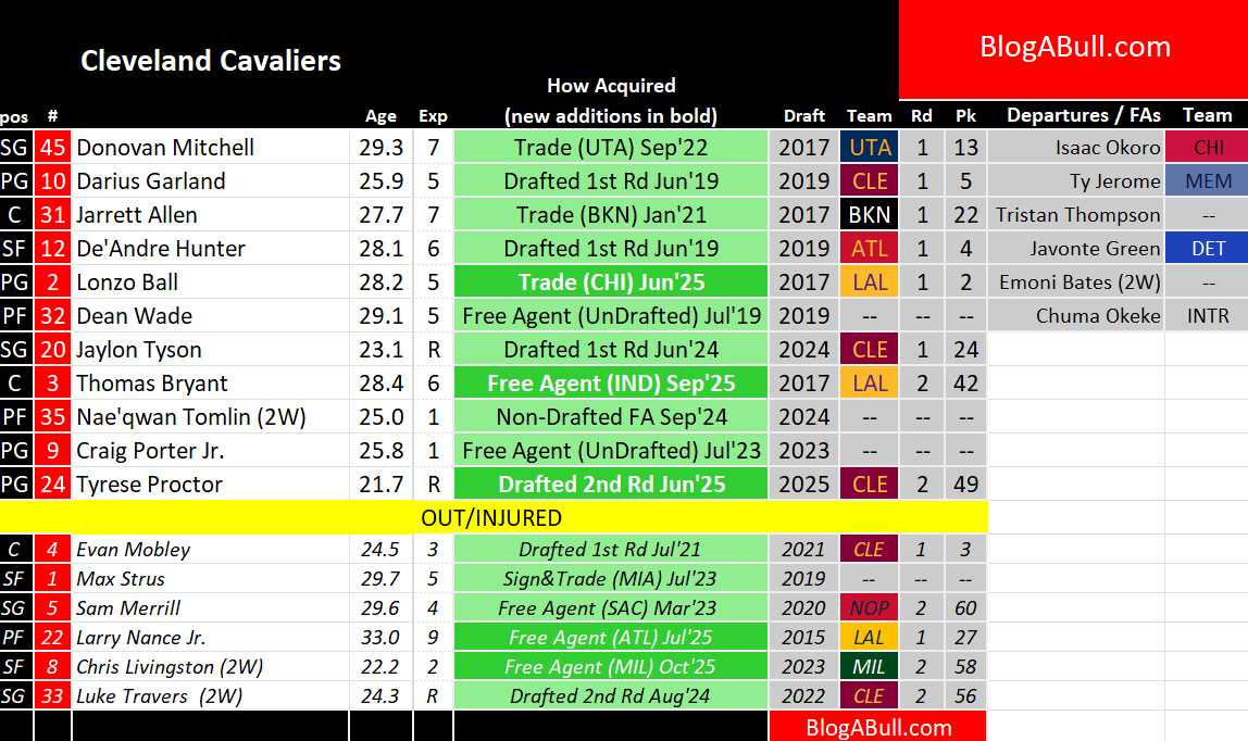 Cleveland has had a lot of regular season success but back to back playoff flame outs, opting to run it back one more time and it's going terribly. There has been some key injuries to Max Strus, Jarrett Allen, Evan Mobley (very recently) and most damagingly to Darius Garland, who has played but doesn't look 100%.