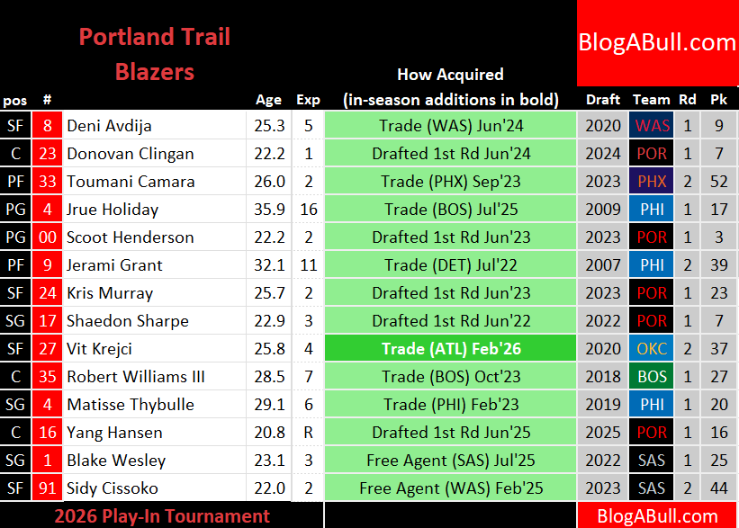 The Blazers have two chances to make the playoffs and therefore convey that selection1 to the Bulls. Familiarize yourself with your new favorite team.