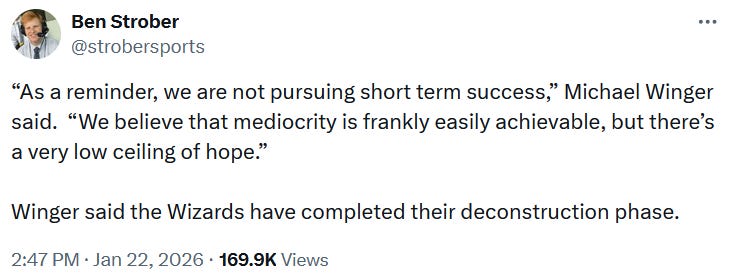 And the biggest flaw of all: that goal is simply that they keep their jobs. They believe mediocrity (whether 6th or 10th seed, in this conference and this year) is not a step in the journey towards contention, but it is the destination. And therefore they are not, actually, that far away, and in fact are too close to risk a smaller move mean taking a short term step back.