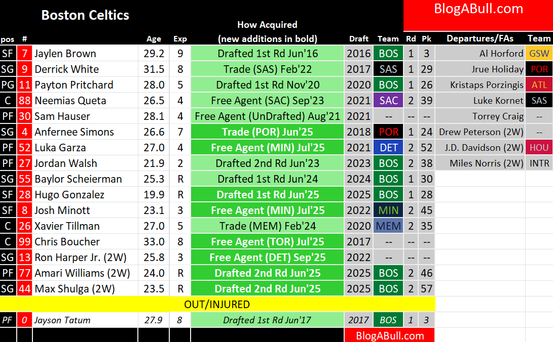 Tonight they play the Boston Celtics for the first time this season. That means I get to publish a roster snapshot and talk about another team that’s not the Bulls!